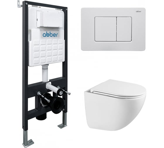 Комплект подвесной унитаз ABBER Bequem AC1131TC белый, с закрытым дном с инсталляцией AC0105 и кнопкой AC0120MW белая матовая AC1131TC-AC0105-AC0120MW