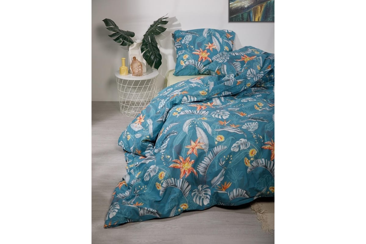 Комплект постельного белья Luisa De Rizzo Экзотические цветы 70351-1+634 поплин, 2 спальный, евро, 70x70.2, премиум 4660056163133 подходит для организации спального места.