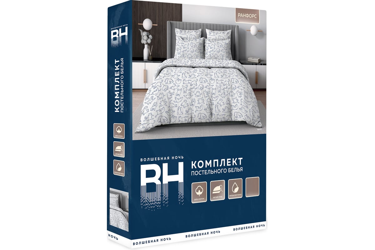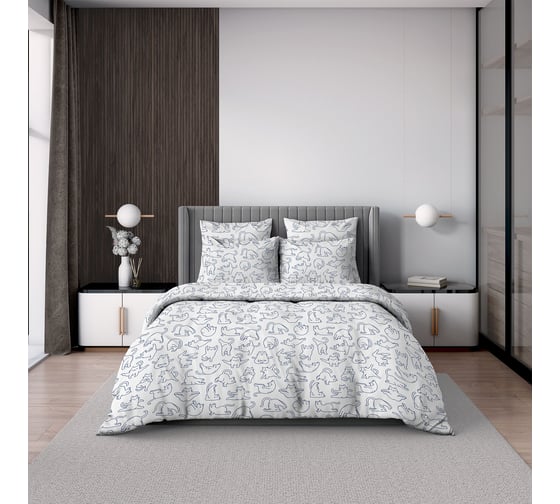 Комплект постельного белья Волшебная Ночь Семейный Ранфорс 110 г/кв.м Yoga cat-2 с наволочками 50х70 см 926835