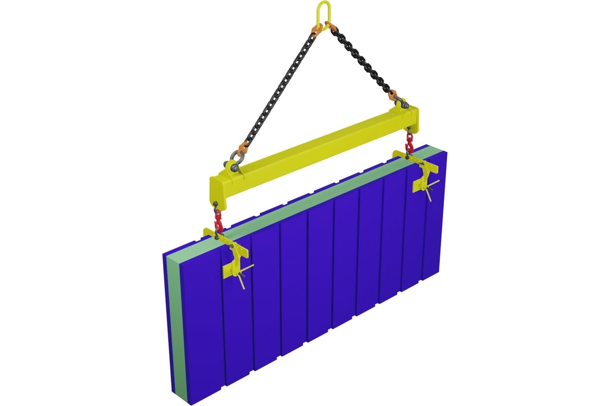 Комплект приспособлений для мягких панелей САМСОН КГП 01 0,5т L=5м с ЗСТу-0,25-50-250 080100042258 предназначен для кантования, подъема и перемещения мягких панелей к месту складирования или монтажа. Комплект приспособлений позволяет работать с панелями толщиной от 50 до 250 мм и длинной до 12 метров. В состав комплекта входят траверса и пара захватов ЗСТу с подвесом на стропах.