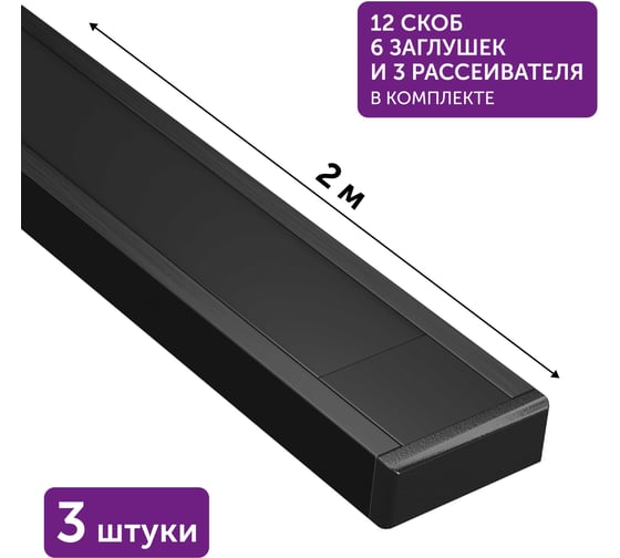 Алюминиевый профиль для светодиодной ленты накладной Geniled 2 метра 3шт черный 12131b_ch_3