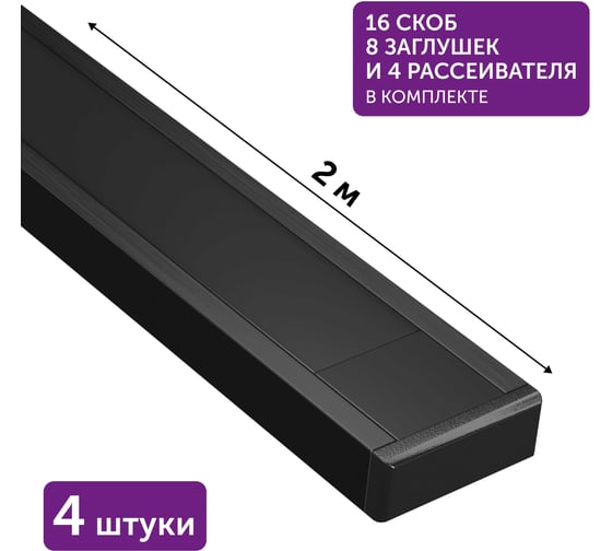 Алюминиевый профиль для светодиодной ленты накладной Geniled 2 метра 4шт черный 12131b_ch_4