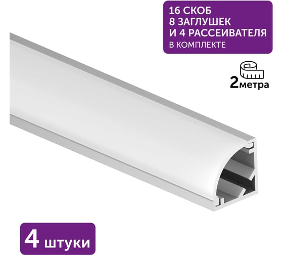 профиль 2 метра (4шт), рассеиватель (4шт), заглушки (8шт), монтажные скобы (16шт)