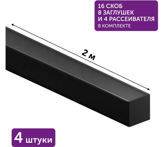 Алюминиевый профиль для светодиодной ленты угловой 16х16 Geniled 2 метра 4шт черный 12345b_ch_4
