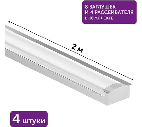 Комплект профиля для светодиодной ленты серебро врезной Geniled 22x6x2000 М16 с заглушками и плоским рассеивателем (4шт) 12130_ch_4