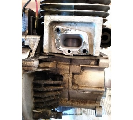 Прокладка между проставкой карбюратора и цилиндром сделана из прессованной пыли, видимо! После установки из комплекта не пережила и пары кошений, развалилась на куски. Бензиновой смесью с маслом забросало весь мотор. Сальник коленвала при этом исправен (!). Что говорить, все видно на фото. Собирать мотор на таких поделках нельзя!