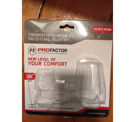 Комплект радиатора PROFACTOR термостатический, угловой, с преднастройкой и уплотнением, 3/4 PF RVT 992UR предназначен для подключения отопительных приборов и плавного регулирования теплового режима в помещении за счет изменения расхода теплоносителя в отопительных системах, может использоваться в однотрубных и двухтрубных системах отопления.