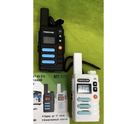 Рация Freecom MT-777 работает на разрешенных частотах: 69 каналов LPD, 8 каналов PMR, с выходной мощностью 0.5/3 Вт.