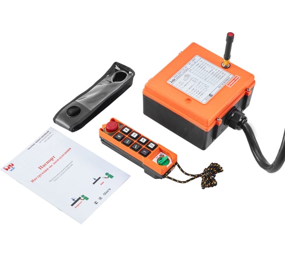 Комплект радиоуправления предназначен для манипулирования тельфером или талью. Состоит из пульта управления и приемника. Корпусы блока и пульта выполнены из соединения нейлона и стекловолокна, что обеспечивает жесткость и защищает оборудование от возможных механических ударов и повреждений. На передатчике размещены кнопка аварийного стопа, 8 двухпозиционных кнопок, каждая из которых программируется отдельно. Двухпозиционные кнопки способствуют перемещению груза в двух режимах скорости. Применение комплекта дистанционного управления экономит время точного перемещения груза, повышает уровень безопасности труда. Устройство использует для передачи сигнала частотный резонатор «Кварц».