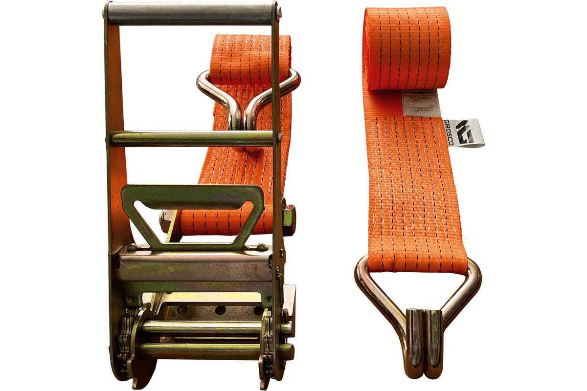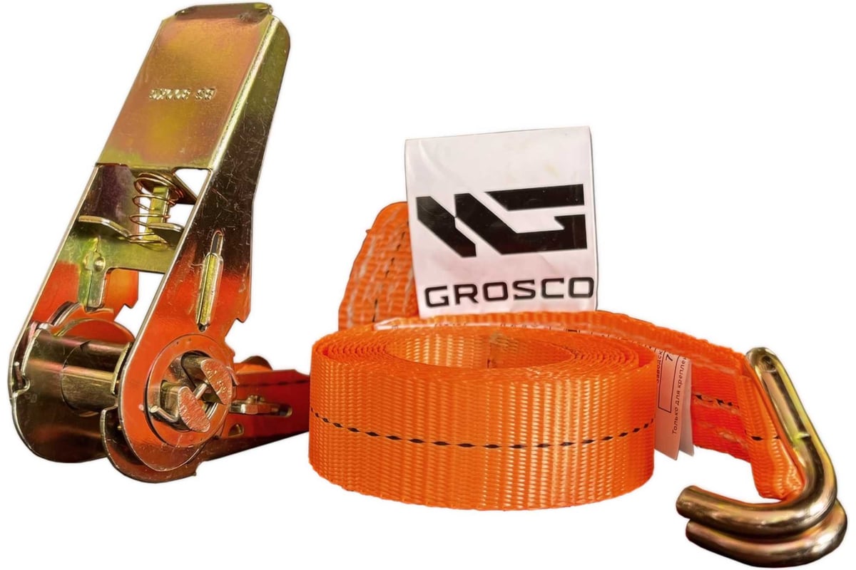 Все характеристикиСтяжной ремень GROSCO с крюками и храповым механизмом — надежная фиксация груза Предназначен для надежной фиксации и крепления грузов на всех типах транспорта. Этот текстильный ремень широко используется при перевозке грузов в легковых и грузовых автомобилях, на прицепах, в автовозах, а также для крепления багажа на крыше, в багажниках, на мотоциклах, квадроциклах, лодках, байдарках и каноэ.