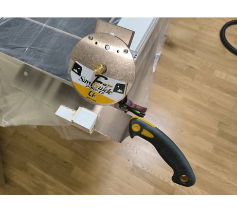 1) Немного неточная градуировка на направляющей. Перепрверяю всегда встроенным транспортиром, на 45 градусах, где-то пол градуса различие. 2) нельзя выставить угол меньше 45 градусов 3) Все же дороговато за ручную пилу и направляющую