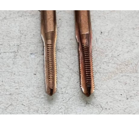 для резьбы М3. нормальные метчики. видно, что производитель знает, чем черновой метчик должен отличаться от чистового. первый номер, имеет правильный конус и спиленные зубья, как положено. брал других производителей, там что черновой, что чистовой одинаковые. тут с этим всё ок. чернину режет отлично. нержу и цветмет пока не пробовал.
