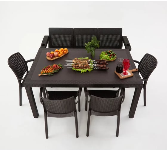 Комплект садовой мебели WORKY HomlyGreen 3+4стула+обеденный стол 153х79, с комплектом коричневых подушек ARD259371