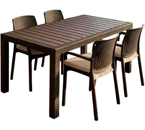 Комплект садовой мебели WORKY HomlyGreen, большой стол 153×79×70 см, 4 стула, цвет мокко, с бежевыми подушками ARD260448