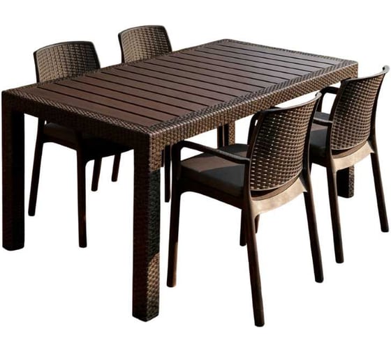 Комплект садовой мебели WORKY HomlyGreen, большой стол 153×79×70 см, 4 стула, цвет мокко, с серыми подушками ARD260450