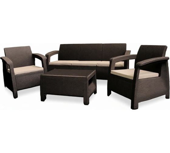 Комплект садовой мебели WORKY HomlyGreen Set 3+1+1+Кофейный столик+подушки бордового цвета ARD259233