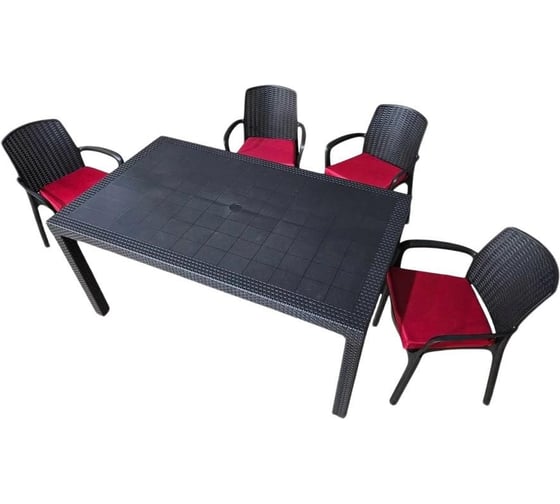 Комплект садовой мебели WORKY HomlyGreen, стол большой прямоугольный на 4 персоны 160×95×75 см, 4 стула, цвет венге, с бордовыми подушками ARD260441