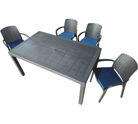 Комплект садовой мебели WORKY HomlyGreen, стол большой прямоугольный на 4 персоны 160×95×75 см, 4 стула, цвет венге, с темно-синими подушками ARD260440