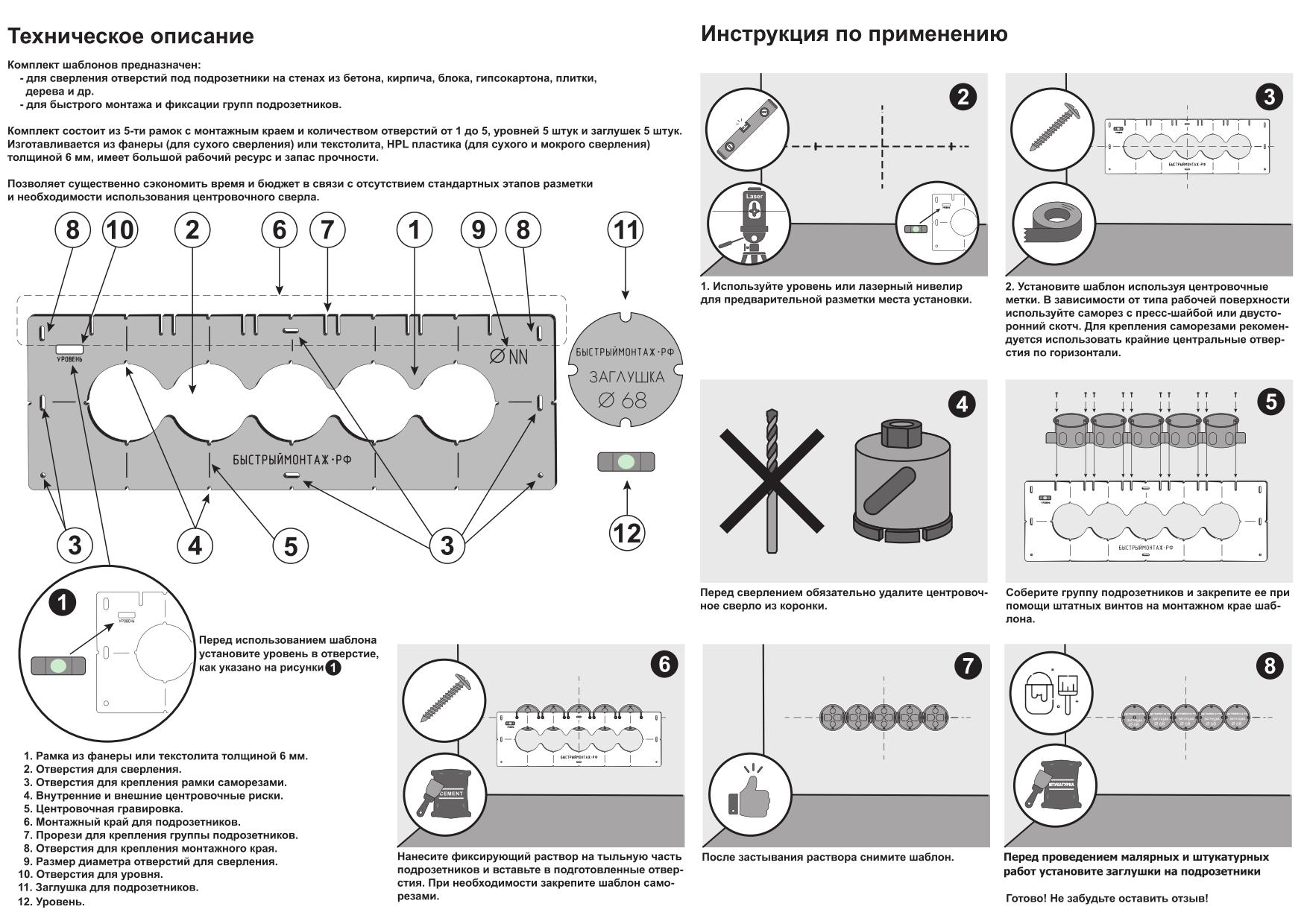 Технические характеристики комплекта шаблонов для подрозетников ИП Ансимов Евгений Анатольевич BM-006-82