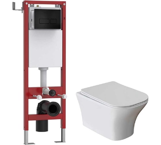 Комплект система инсталляции МЕХАНИКА 380+унитаз СИТИ/CITY+прямоугольная кнопка V2 чёрная WAVE, 558142