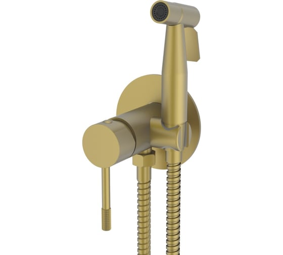 Свойства: Смеситель однорычажный, с рычагом управления и керамическим картриджем диаметром 35 мм для плавной и надежной регулировки потока. Конструкция встраиваемая, без термостата, с одним выходом воды. Корпус выполнен из латуни с матовым покрытием в оттенке матовое золото, длина шланга гигиенического душа — 1,5 м.