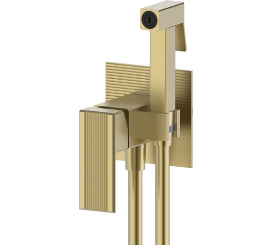 Свойства: Смеситель однорычажный, встраиваемый, с удобным рычагом управления и керамическим картриджем диаметром 35 мм для плавной регулировки напора и температуры воды. Корпус выполнен из латуни с матовым покрытием в оттенке матовое золото, что обеспечивает износостойкость и устойчивость к коррозии. Длина шланга гигиенического душа — 1,5 м, что достаточно для комфортного использования в зоне биде.