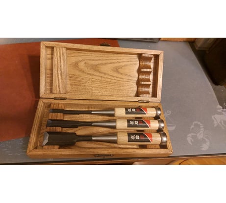 Не слишком доволен, но очень удобно иметь комплект стамесок на 30° для твердого дерева. Интересный опыт работы традиционными японскими стамесками.