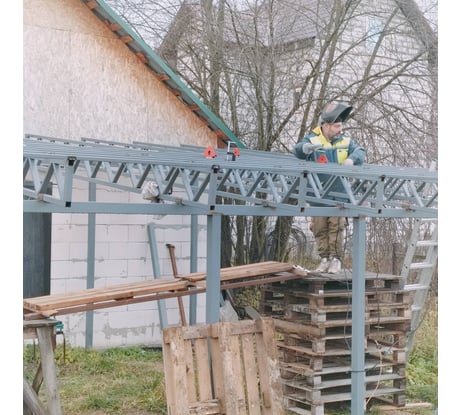 Делаю навес из ферм 6/6..Купил более длинные провода,чтоб меньше прыгать по лесам.Провода мягкие,16 коннектор,держак отличный.