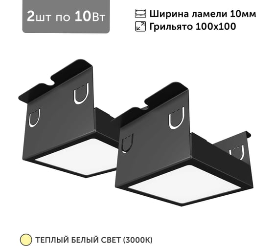 Светильник для грильято 2шт по 10Вт 3000К для ячейки 100x100 мм ширина ламели 10 черный встраиваемый Geniled 27172_3000_black