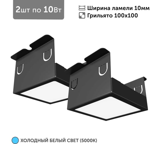 Светильник для грильято 2шт по 10Вт 5000К для ячейки 100x100 мм ширина ламели 10 черный встраиваемый Geniled 27172_black