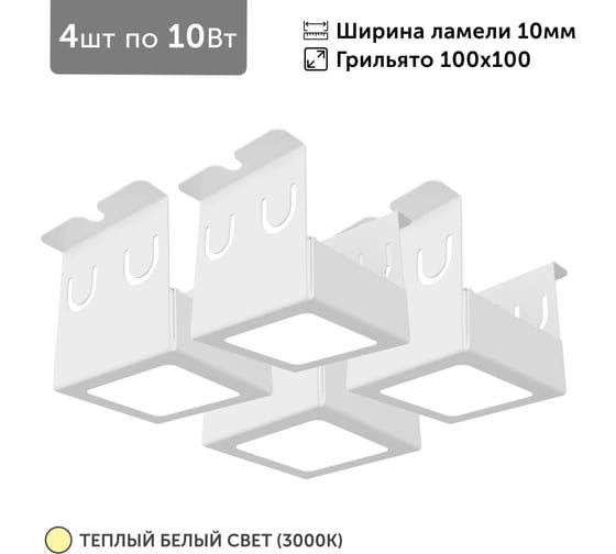 Светильник для грильято 4шт по 10Вт 3000К для ячейки 100x100 мм ширина ламели 10 белый встраиваемый Geniled 27182_3000