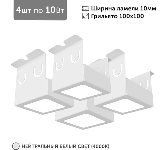 Светильник для грильято 4шт по 10Вт 4000К для ячейки 100x100 мм ширина ламели 10 белый встраиваемый Geniled 27182_4000