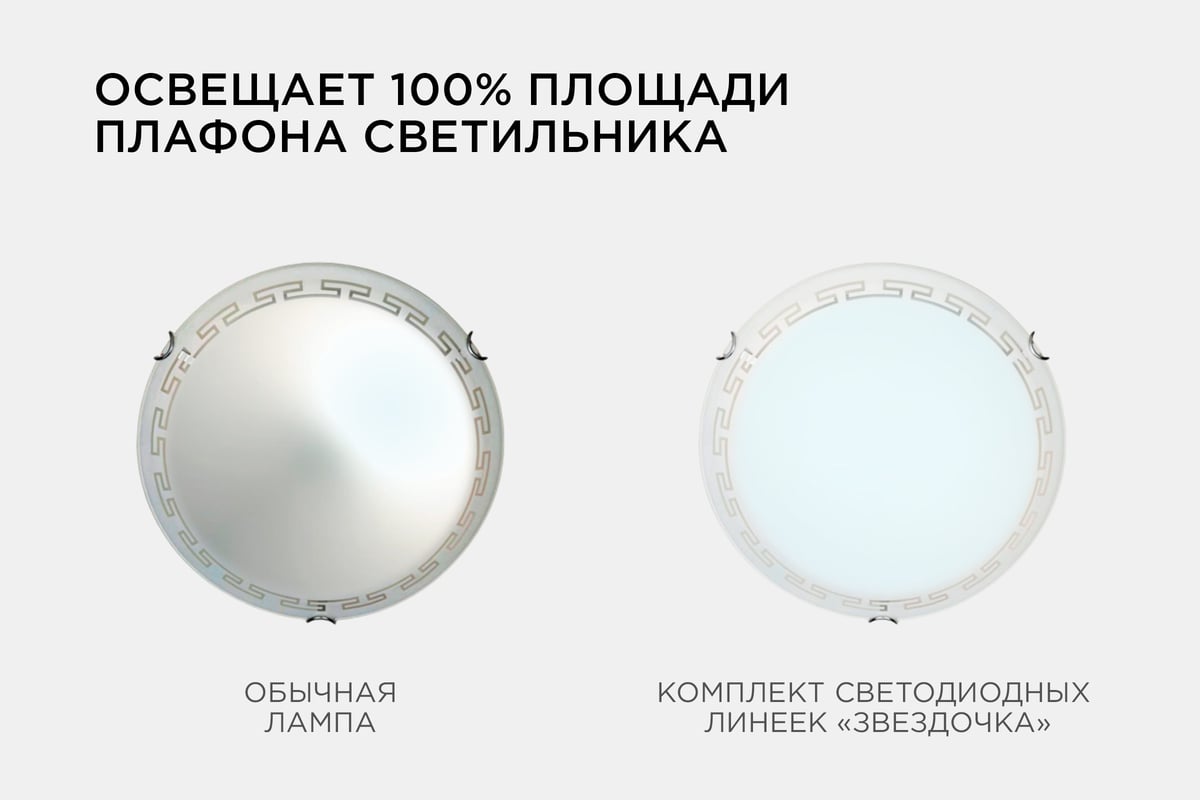 Комплект светодиодных линеек “Звездочка” от Apeyron предназначен для замены стандартных ламп, а также современных светодиодных источников свечения, которые уже повсеместно используются в настенно-потолочных светильниках.
