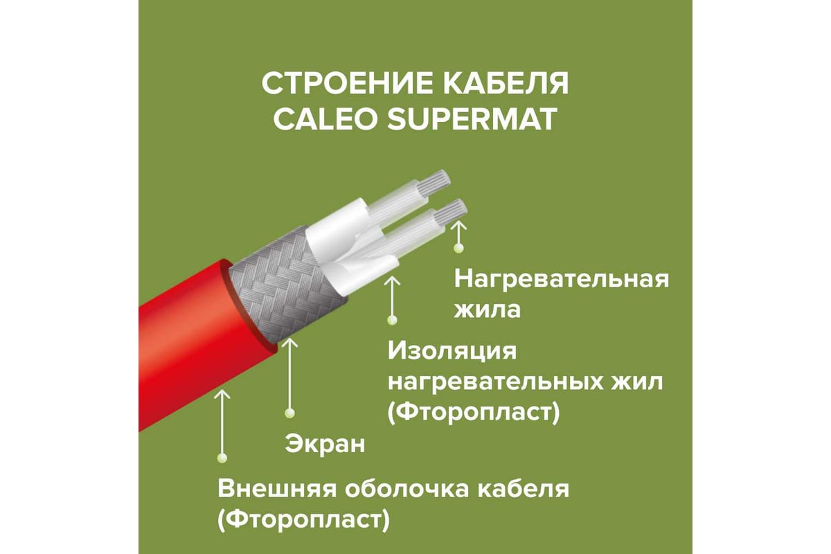 Комплект теплого пола Caleo Supermat предназначен для монтажа в тонкую стяжку, плиточный клей или наливной пол. Может монтироваться как в стандартных, так и холодных помещениях. Удобная, с постоянным шагом раскладка кабеля на сетке позволяет осуществить легкий и быстрый монтаж термомата на любых поверхностях даже сложных конфигураций.