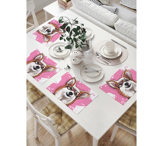 Комплект тканевых салфеток для сервировки стола JOYARTY "стильный корги", 32x46 см, 4 шт. np_385294