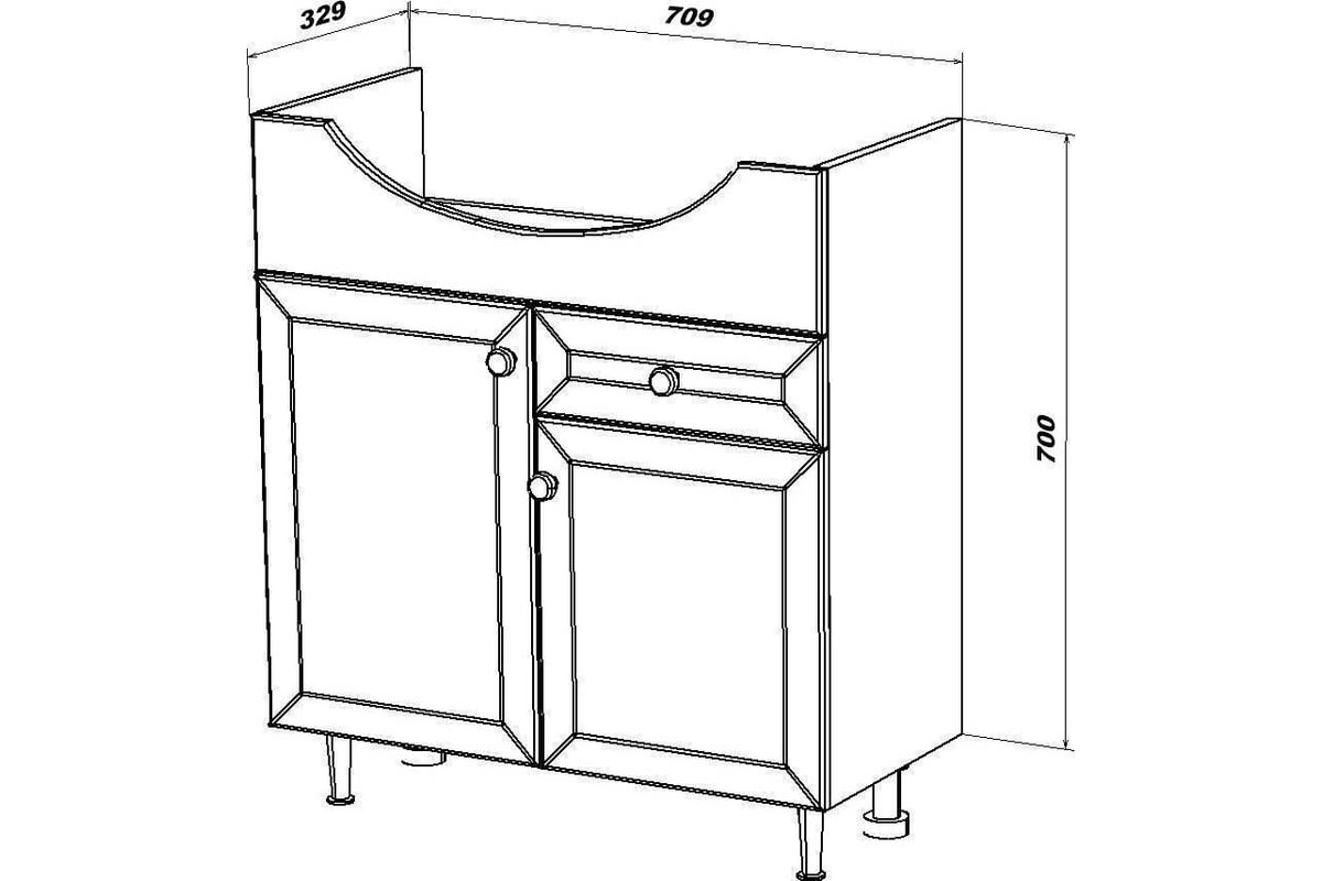 Комплект тумба Sanstar Бриз 75, мебельный умывальник Байкал 75 11.1-1.4.1.К