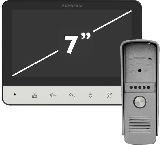 Комплект видеодомофона Skybeam состоит из монитора, который размещается внутри помещения, и вызывной панели, которая находится снаружи. Он подходит для частного дома и офиса. Устройство позволяет не только слышать посетителей, но и видеть их, а также записывать происходящее на камеру.