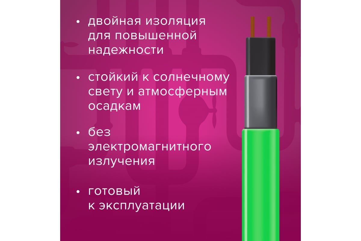 - Нагревательная секция из саморегулируемого кабеля с силовым кабелем длиной 3 м и вилкой.