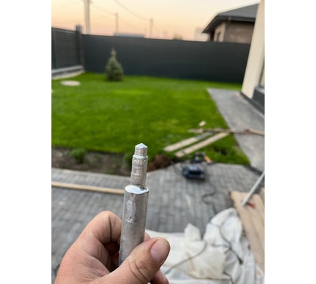Купил и забил первый комплект в этом году. В отличии от ранее приобретенных комплектов насадка больше не расклепывается, наверное закалили, видно отличается по цвету. 4 стержня забил, все плотно. Замерил сопротивление 9 Ом, у меня суглинок потом песок.
