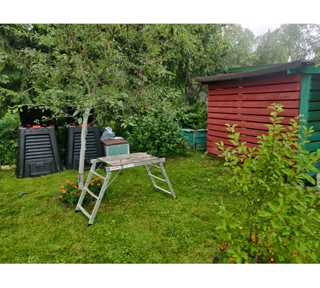 Большой, прочный компостер. Вписался прекрасно на садовом участке.