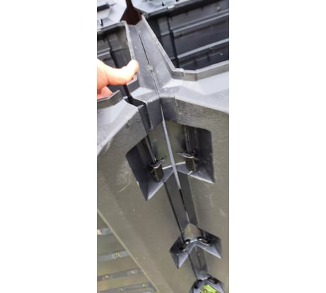 Крайне хлипкий, очень тонкий пластик, на любой неровности перекашивается, перегородки между отсеками нет, у крышек нет ограничителя отрытого положения и их может вывернуть из креплений