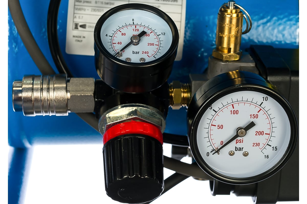 Агрегат отличается высокой производительностью. Мощности устройства хватает для подключения пневматического оборудования полупрофессионального применения.