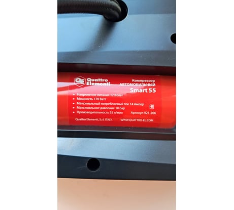 Компрессор автомобильный QUATTRO ELEMENTI Smart 55 (12 Вольт, 170 Вт, 10 бар, 55 л/мин, фонарь, сумка) 921-206