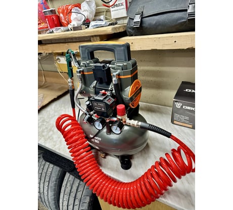 1. Не нужно заливать, менять, проверять уровень масла просто потому, что его там нет. 2. Адекватный размер устройства, можно перевезти в багажнике автомобиля в собранном виде, легко переносить в руках. 3. Качественная сборка, ничего не люфтит. Достал из коробки, прикрутил колеса и фильтры, подключил к сети и можно работать. 4. Относительно тихий, запускал в квартире, барабанные перепонки на месте, соседи не жаловались. 5. Позволяет использовать краскопульт для нанесения клея для шумоизоляции, краски для покраски труб, нейлера для забивки шпилек. 6. Из-за малого объема бака может включаться часто, головы нагреваются, грел до градусов 60-70, потом давал отдохнуть. Охлаждение голов только при накачке. Двигатель бесщёточный, поэтому нагрев некритичен. После пяти подряд пополнений бака кроме нагрева никаких изменений нет. Бак набирает чуть больше чем за минуту. В целом, инструментом доволен, работает как часы, выглядит красиво, собран отлично, присутствуют необходимые защиты, кроме как сливать конденсат после использования можно ничего не делать.