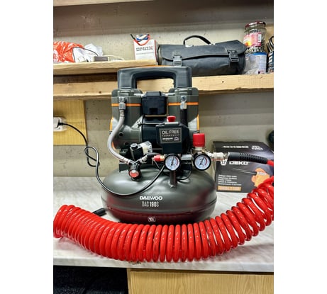 И так. Решил я как то заняться домашней столярной мастерской. Приобрёл станки. Настало время приобрести компрессор. Человек я дотошный. Перелазил кучу сайтов и форумов. Обошёл много знакомых, которые непосредственно работают с таким оборудованием. Смотрел и масляные и безмасляные. И ременные и безременные. После многих мучительных и бессонных ночей выбор пал на этого красавца. Почему же. 1.Габариты. Он компактный. Его можно переносить (в отличии от ременных), без проблем перевозить (в отличии от маслянных). 2. По заявленным характеристикам мне кажется у него нету конкурентов в данном ценовом сегменте. Дешевле брать. Не получишь хорошей мощности, чтобы работать с разным инструментом (начиная от продувки и заканчивая........) 3.Он тихий. Мастерская пока небольшая. Так в отличие от маслянных поршневых можно не напрягаясь разговаривать. 4. С эстетической точки зрения, а мы столяры Ж ведь художники. Он красивый, как впрочем и вся техника Daewoo. Жалко и дорогой тоже как вся техника данной фирмы. Хотел бы себе и пилу и снегоуборщик, но дорого. Хотя за качество надо платить. 5. Забыл совсем. Гарантия 3 года. А это о чем то говорит. Ну все рассказ закончил. Да совсем забыл. Я неподставной. Покупал через интернет во Все Инструменты.