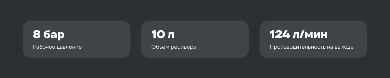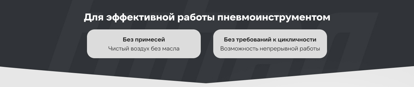 - Высокая производительность и ресурс : компрессор может работать в непрерывном цикле, без требований к цикличности нагрузки