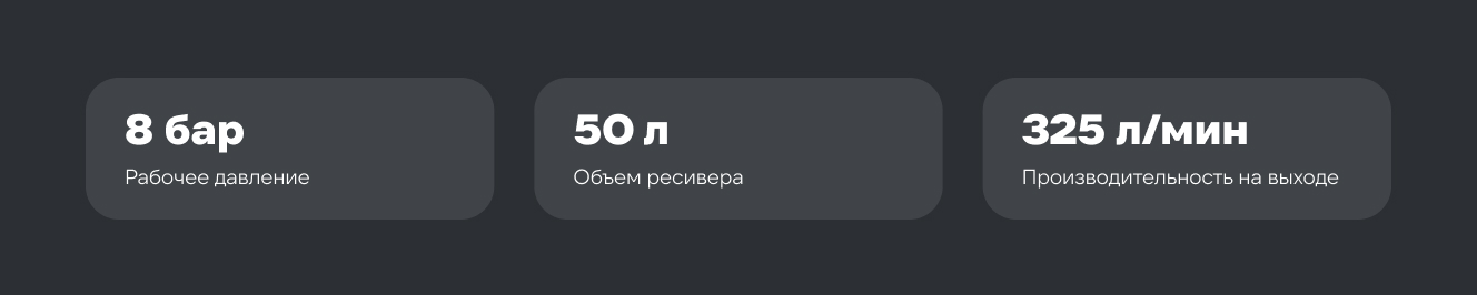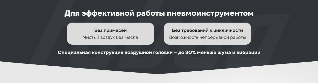 - Высокая производительность и ресурс: компрессор может работать в непрерывном цикле, без требований к цикличности нагрузки