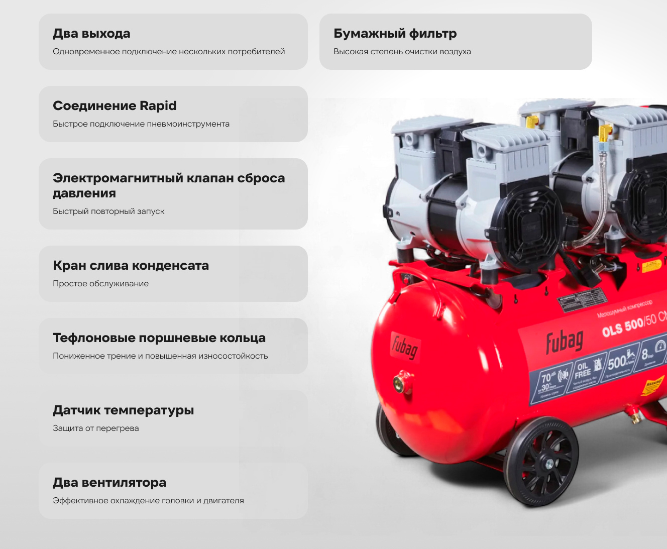 Компрессор безмасляный малошумный FUBAG OLS 500/50 CM2х2 646074
