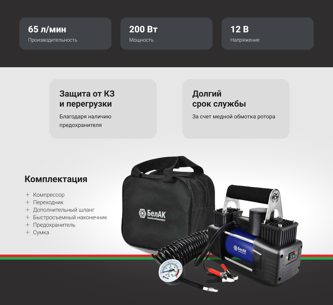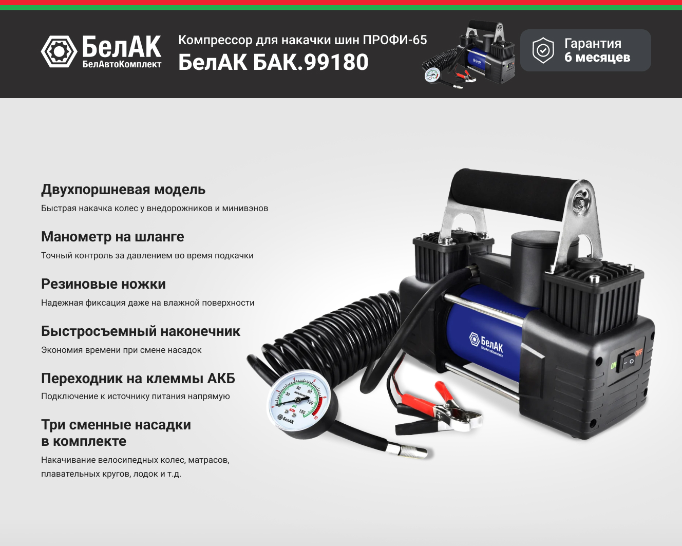 Преимущества компрессора БелАК ПРОФИ-65 БАК.99180