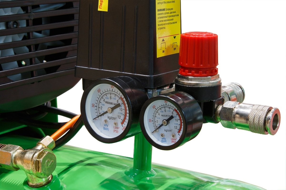Наличие двух быстросъемных выходов позволяет подключить одновременно два инструмента. Регулятор давления обеспечивает безопасную работу.